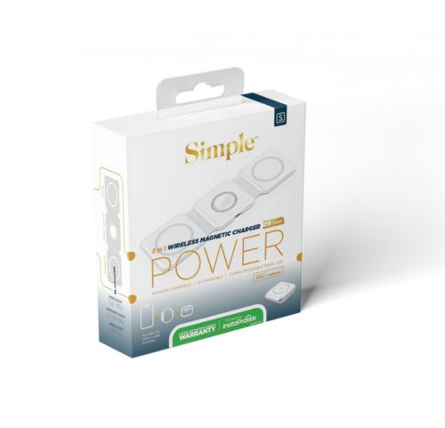 3-in-1 Wireless Magnetic Travel Charger – Convenient Power on the GoThe 3-in-1 Wireless Magnetic Travel Charger from MySimple offers a compact, foldable design that ensures easy charging for multiple devices on the move. Compatible with MagSafe and Qi-enabled devices, it’s ideal for powering up smartphones, earbuds, and smartwatches with one charger, minimizing clutter and making it a must-have for travel.